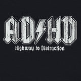 Alert those around you why you're bouncing off the walls with this AD/HD t shirt. Flashy AC/DC lettering really catches the eye, so everyone will be aware of your condition. Are you even reading this? Didn't think so. Highway to Distraction is right...